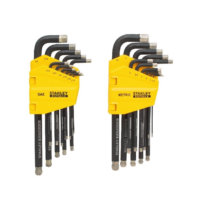 This FATMAX® Simulated Diamond Tip Hex Key Set includes 22 strong, rust-resistant steel hex keys in many popular SAE and Metric sizes. Each key features industrial-grade, simulated diamond-coated tips to provide up to 40% more grip on fasteners*, and a ball end that’s ideal for turning hard-to-reach fasteners on an angle. This handy set comes with two hangable, labeled holders to make it easy to find the exact size you’ll need for your job.