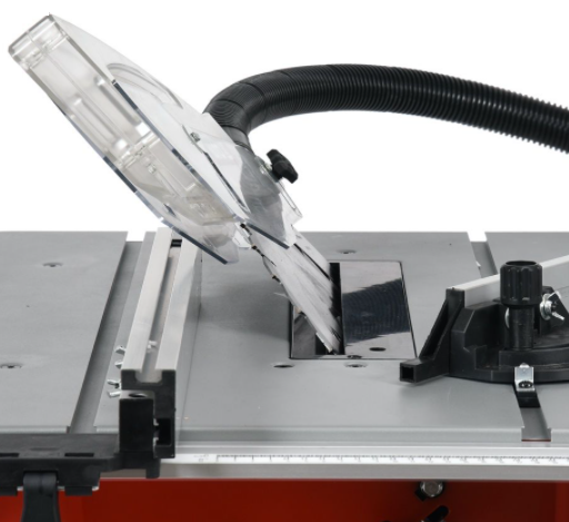 Efficient commutator motor with a maximum power of 2000 W and continuous power of 1800 W cutting height adjustment in the range of 0-85 mm with a convenient and durable knob cutting height at an angle of 90˚: 85 mm cutting height at an angle of 45˚: 65 mm possibility of extending the table from 485 mm to 940 mm by unfolding the side tops the stable steel structure of the supports ensures safe and comfortable work body made of strong plastic resistant to corrosion and mechanical damage disc protective cover with suction hose Supplied with a 250 mm diameter saw blade with 24 teeth and a standard 30 mm diameter clamping hole.